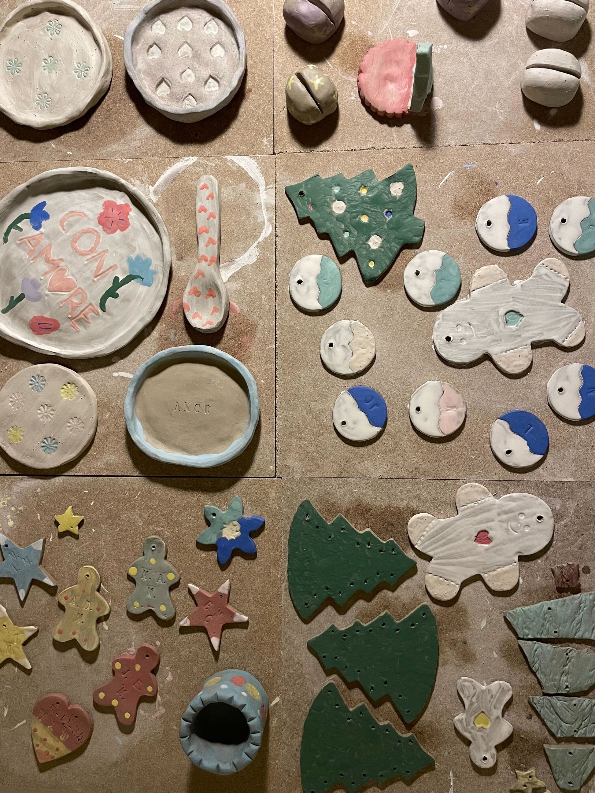 Para que te hagas una idea, el precio promedio de las piezas es de 15/20 €, pero el resto, la pintura, las explicaciones y hasta la cocción, ¡está todo está incluido!