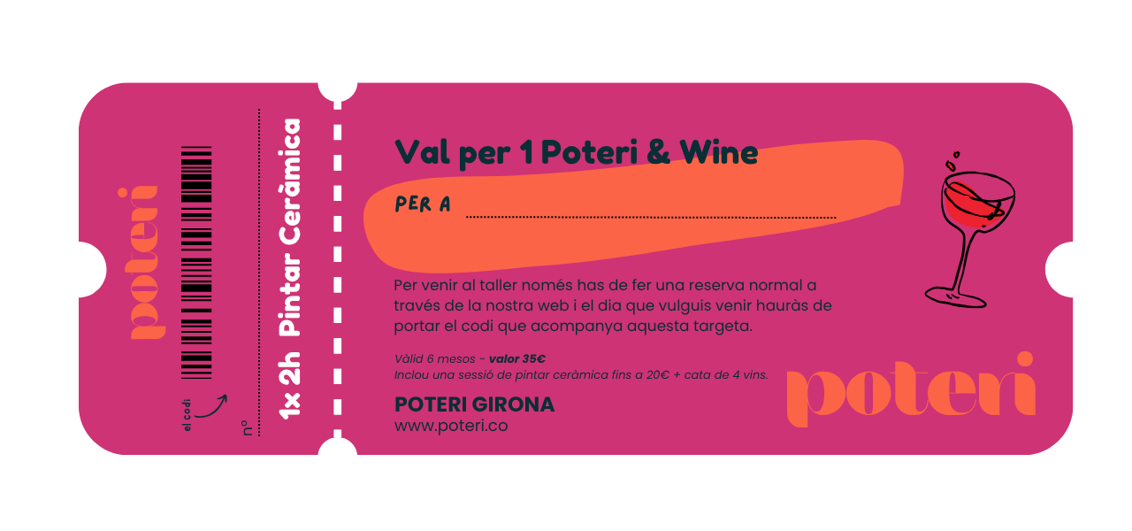 - Una sesión de Poteri&Wine que incluye la sesión de pintar cerámica por un valor de 20€ y la cata de 4 vinos.
